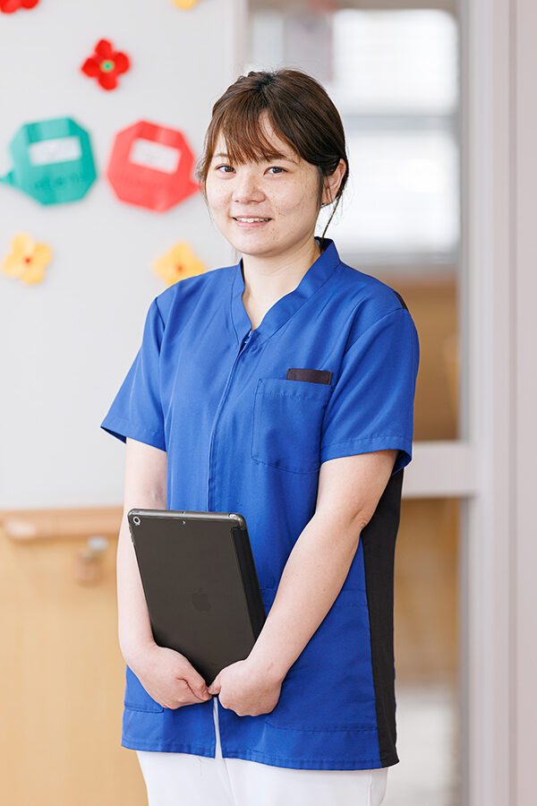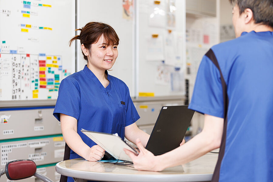 入職時は子育て中だったので、最初は夜勤のない嘱託職員からスタートしました。入職後は病棟課長と相談しながら、段階的に夜勤が可能になったタイミングで正職員に応募しました。私たちの職場ではパートや嘱託職員から正職員になった方がたくさんおられるので、自分のペースでステップアップできる職場だと感じています。